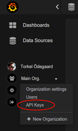 Open the sidemenu and click the organization dropdown and select the API Keys option.